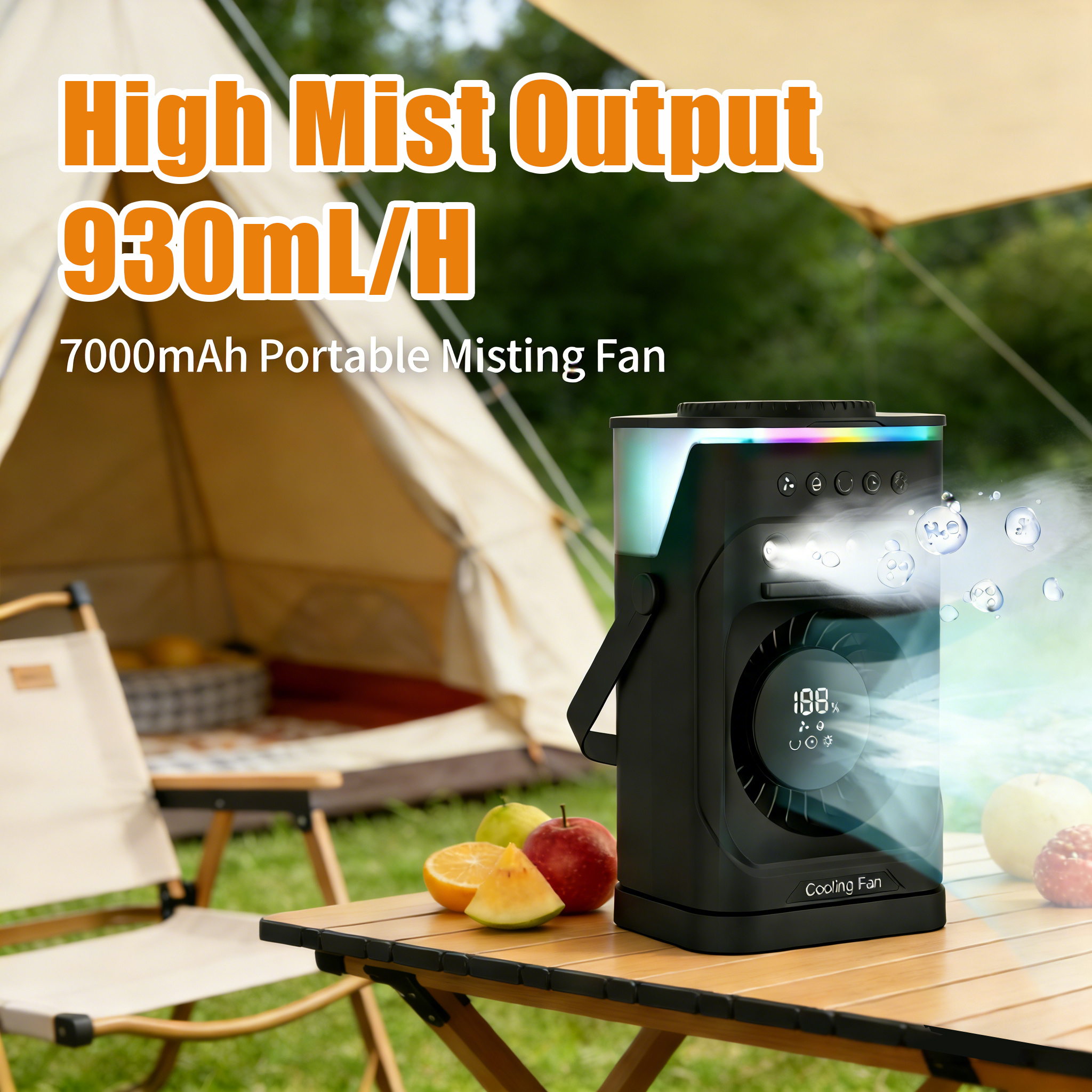 风扇内置 RGB 氛围灯,支持 100 级亮度调节,配备 1-8 小时定时功能与数显屏幕,操作直观便捷。产品采用 7000 毫安锂聚合物电池供电,支持 Type-C 快充,续航持久且回电迅速。