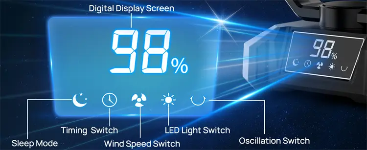 Adjust misting, speed, lights, and timer with the included remote control. Enjoy 8 wind speed settings for a personalized, comfortable experience.